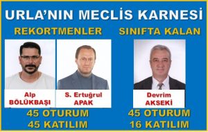 31 Mart seçimlerinde vatandaşın oylarıyla Urla Belediye Meclisi’nde görev almaya hak kazanan 25 üyenin 21 aylık devamsızlık karnesini çıkardık. 15 Nisan 2024 ile 5 Aralık 2025 tarihleri arasında gerçekleşen 45