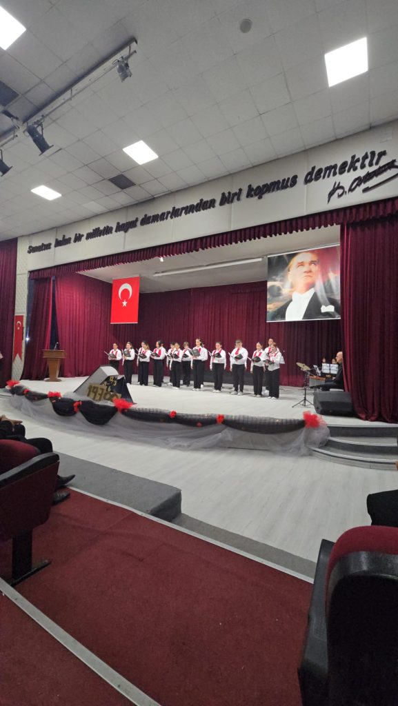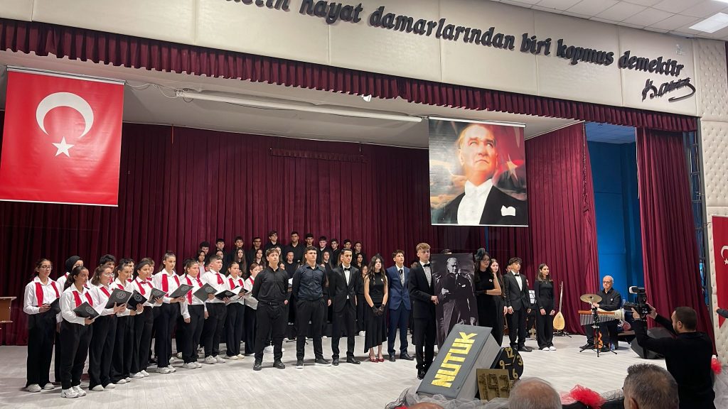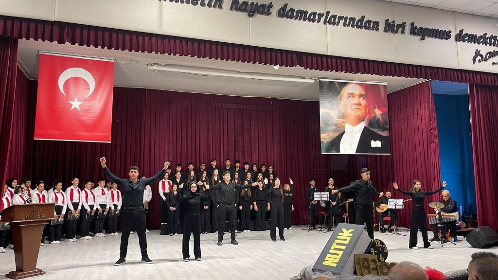 Öğrenciler, Atatürk’ün ilke ve değerlerini yaşatmak amacıyla büyük bir özveriyle hazırladıkları koro, şiir dinletisi ve vals gösterisi ile izleyicilere duygusal anlar yaşattı.